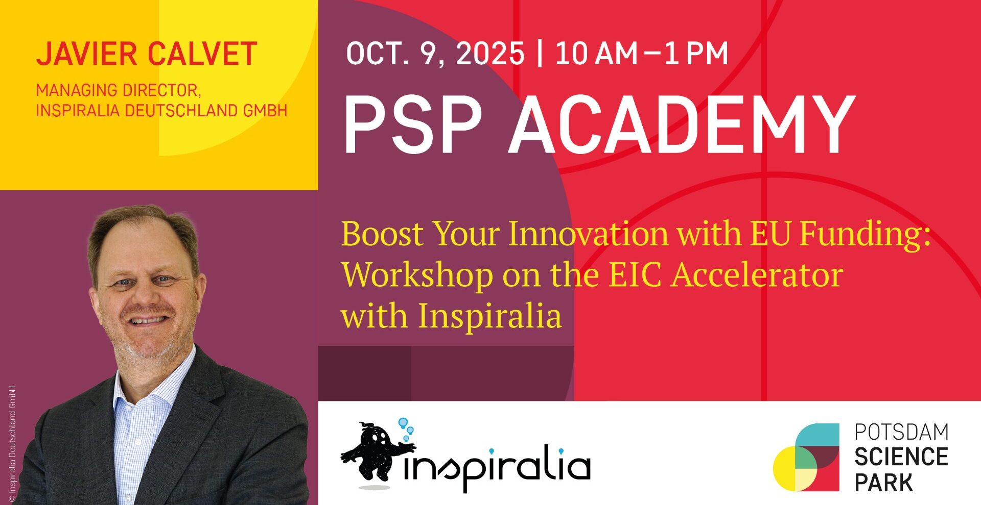 Unser Geschäftsführer und Fördermittelexperte Javier Calvet führt durch die wichtigsten Kriterien, Tipps und Fallstricke bei der Beantragung des EIC-Accelerator. Bringe Deine Projektidee mit und erhalte maßgeschneidertes Feedback und Bestätigung – vor Ort.